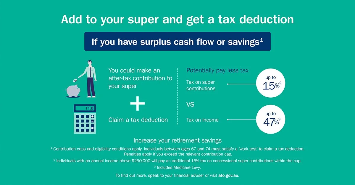 Make an after-tax super contribution by adding any other savings you may have to your super fund.